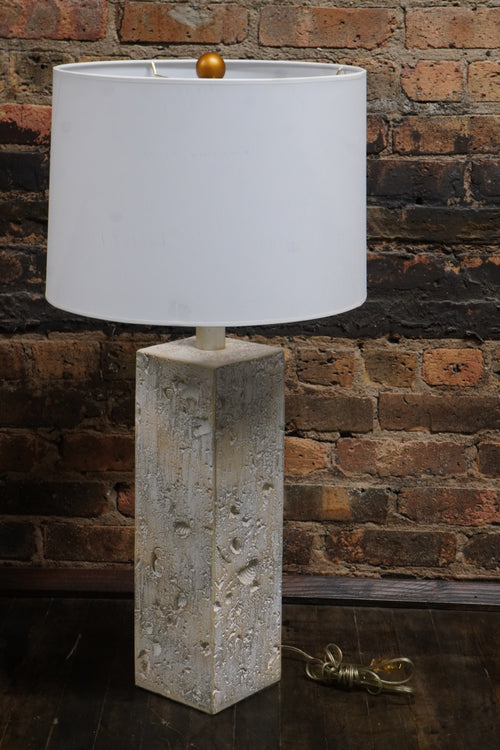 Midcentury Table Lamp Cream Colored with Gold Accents on Wood Base